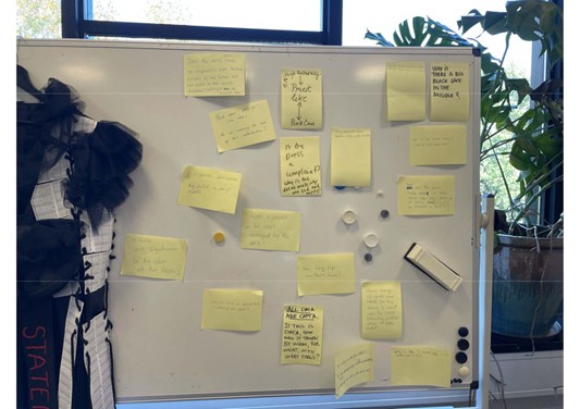 Ethnographic research affirmed an initial hunch that the digital welfare state is inefficient in seeking to enroll everyone as ‘users’ in more or less the same way (Carreras, 2024; Carreras & Winthereik, 2024) as it produces forms of exclusion that require new kinds of stake action. The municipalities have been tasked to take steps towards including the excluded citizens, for example. Digital inclusion has become a policy concept. To me, participation in this situation has included 1) to engage in the public debate on public sector digitalization, 2) through activism by setting up a network of practitioners and other experts to develop principles for citizen-centred digitalization that were presented to the Minister of Digitalization and Equality, and 3) to materialize state-citizen relations differently. The latter involved the making of a dress.