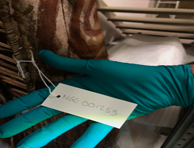 Museum objects must be protected from greasy human hands. Every item is labelled with its unique identifier code, and under no circumstances can labels be removed.